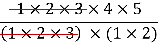 // 경우의 수 공식을 그대로 표현하기 위해 세 부분으로 나누어 계산합니다.
