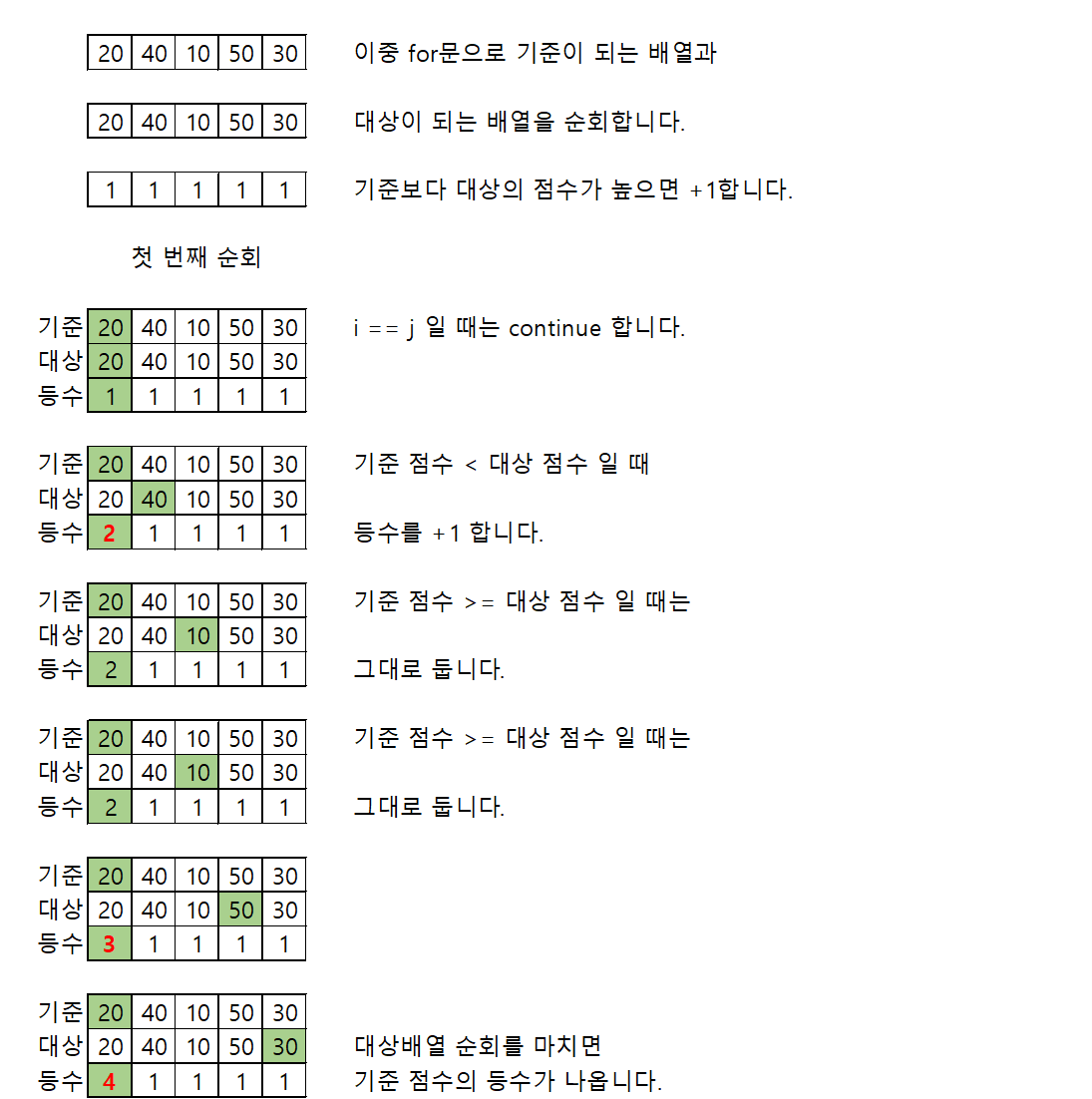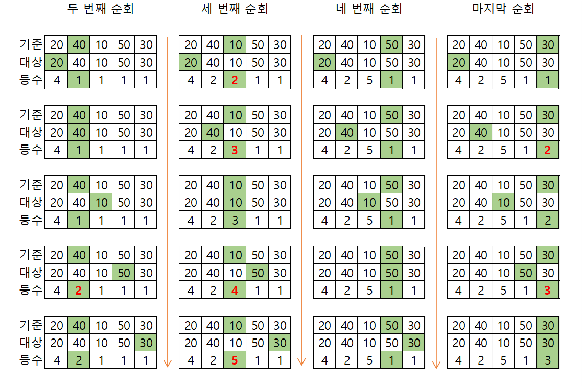 위 알고리즘을 거치고 나면 등수 배열은