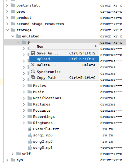몇 개의 mp3파일을 Device File Explorer에서