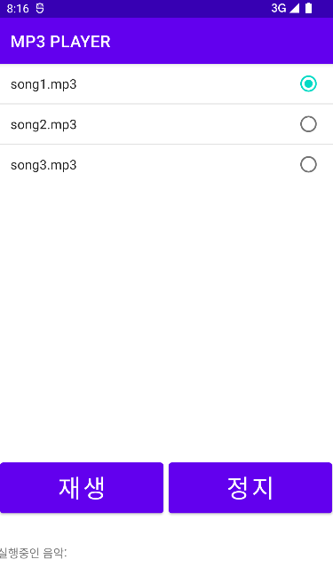 tvMP3.setText("실행중인 음악: ");