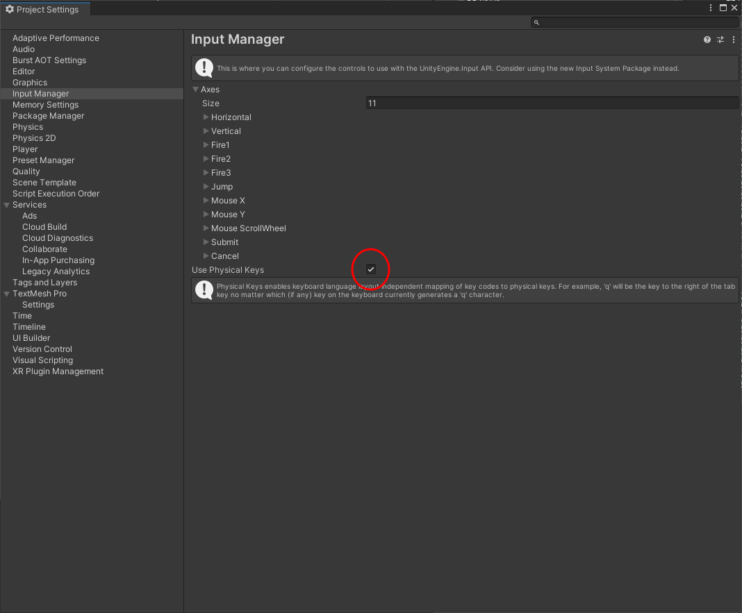 Edit > Project Setting... > Input Manager 에서